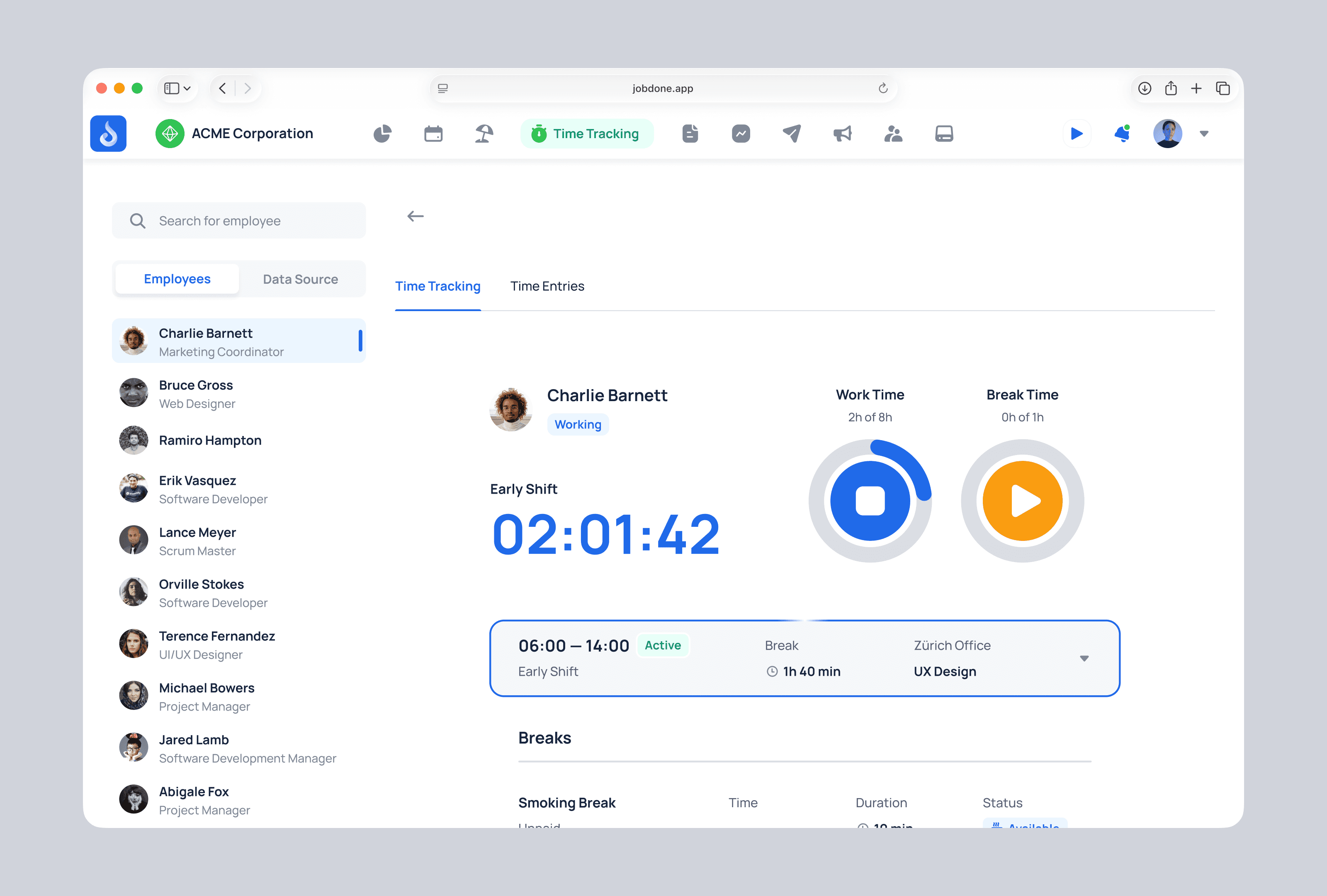 JobDone is a B2B employee management platform that supports workforce planning, time tracking, reporting, and internal communication across web, mobile, and tablet. The product serves companies of different sizes and industries, each with its own rules, workflows, and expectations. The main challenge was designing an interface that could handle a large amount of data and functionality without overwhelming users or fragmenting their workflows.